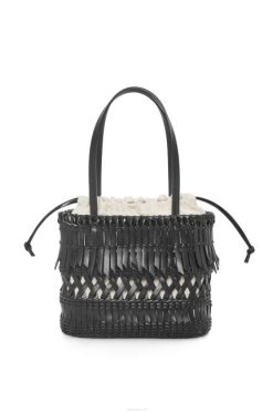 natural/preto 80ZJ24 mulheres bolsa bucket com cordão em folha de palmeira e couro de bezerro Loewe