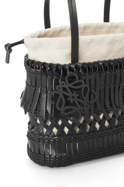 natural/preto 80ZJ28 mulheres pequena cesta embutida em folha de palmeira e couro de bezerro Loewe