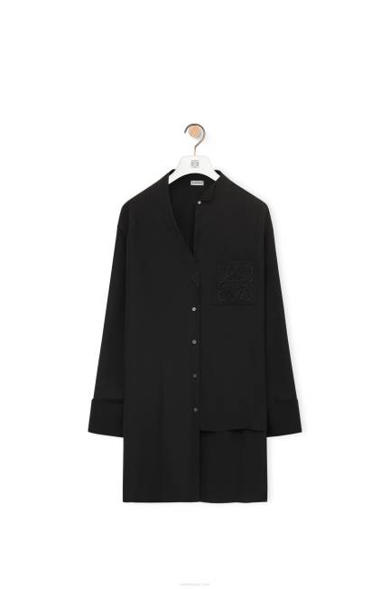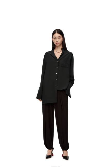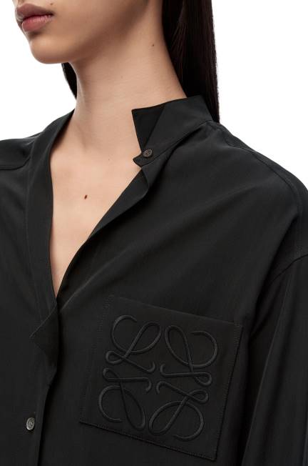 Blusa com abotoamento frontal em toile de seda lavada com gola asa desconstruída, bainha assimétrica e patchpocket em anagrama bordado.