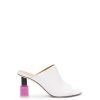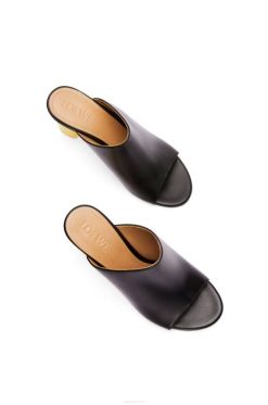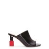 Mule open toe em couro de bezerro com salto em verniz objets trouves.
