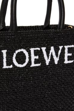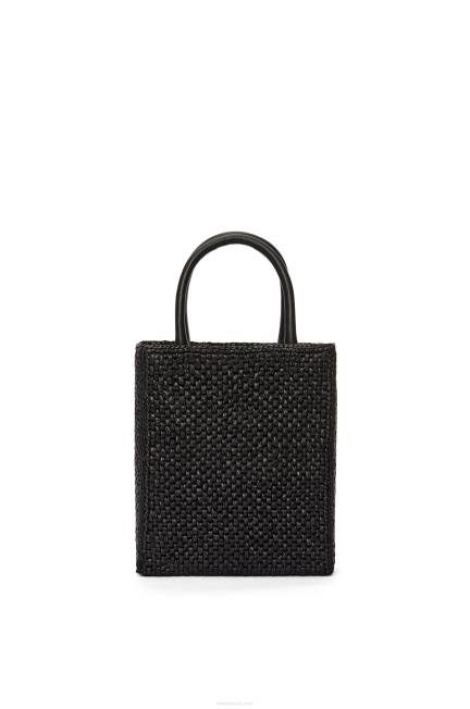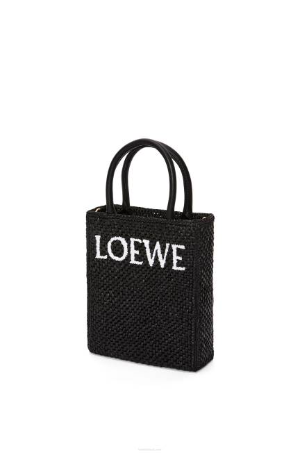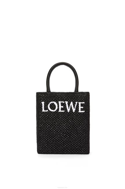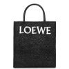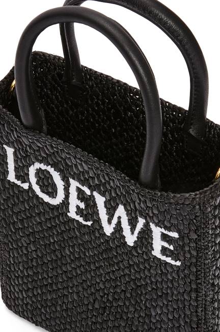 simples e marcante, a bolsa padrão tem silhueta clean, formato pragmático e alças superiores. esta versão a5 é confeccionada em ráfia com alças superiores em couro de bezerro e assinatura loewe contrastante.
