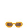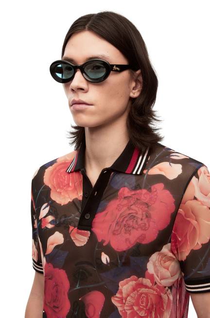 óculos de sol tipo argola em acetato com assinatura loewe no braço.