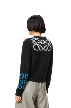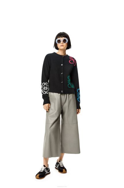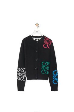 preto/multicolorido 80ZJ1004 mulheres cardigan anagrama intarsia em lã Loewe