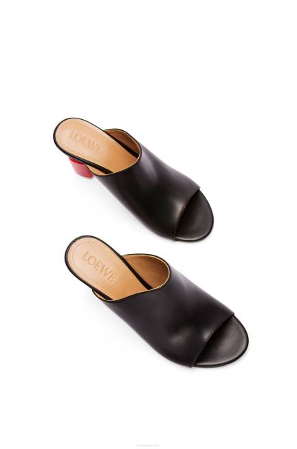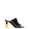Mule open toe em couro de bezerro com salto em verniz objets trouves.