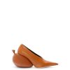 Sapatilha em couro de novilho com bico fino e salto balão 3d.