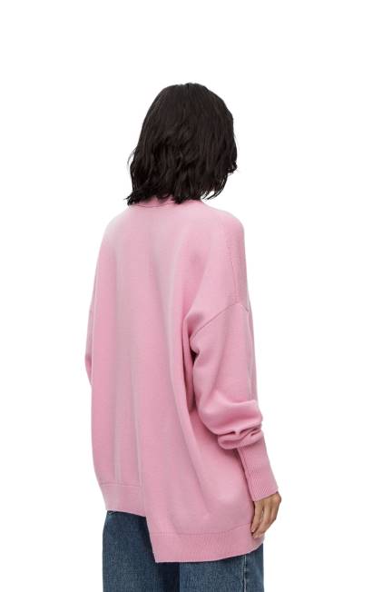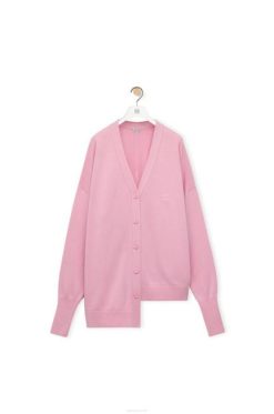 Cardigan com abotoamento frontal, decote em V em caxemira com bainha assimétrica, gola, punhos e bainha canelados e anagrama bordado no peito.