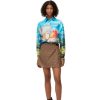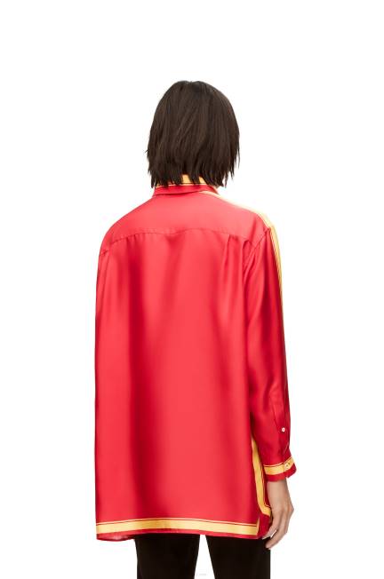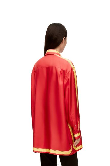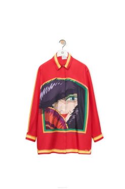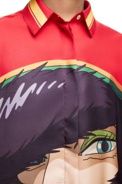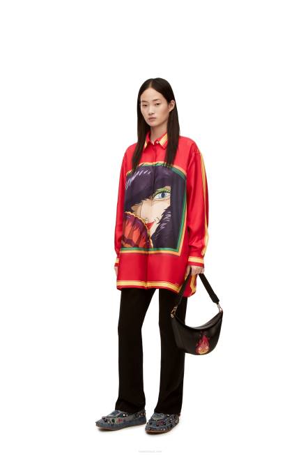 Camisa de seda com abotoamento frontal e estampa bruxa dos resíduos e faixa contrastante na gola, mangas, punhos e bainha.Esta camisa faz parte da coleção cápsula do castelo em movimento da loewe x howl.