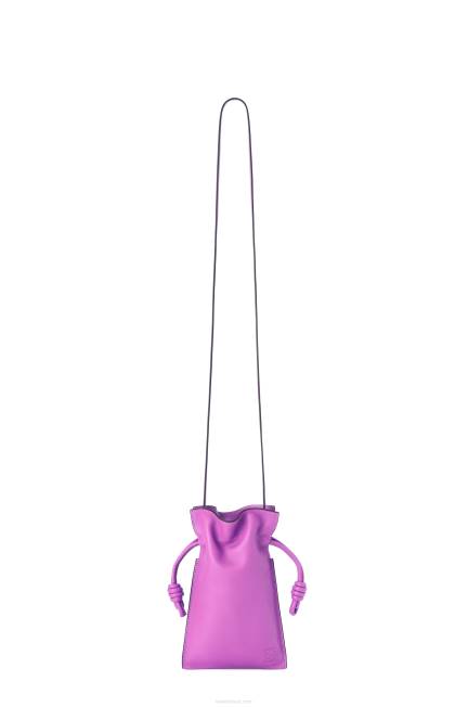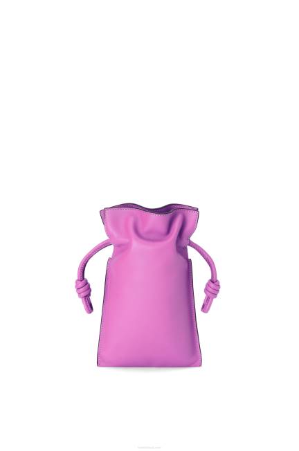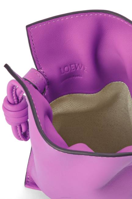 bolsa utilitária em couro de bezerro nappa com alça de ombro e fecho de cordão com os característicos nós enrolados do flamenco.