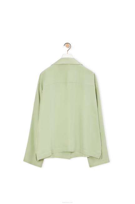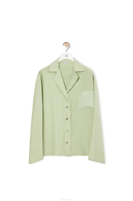 blusa pijama em toile de seda lavada com lapelas e bolso patch jacquard anagrama.