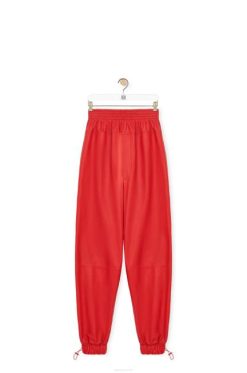 vermelho 80ZJ1108 mulheres calça elástica em napa Loewe