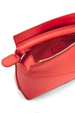 vermelho 80ZJ213 mulheres bolsa mini quebra-cabeça em couro de bezerro acetinado Loewe