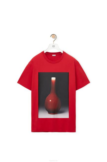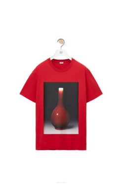 vermelho 80ZJ821 homens camiseta estampada de cerâmica em algodão Loewe