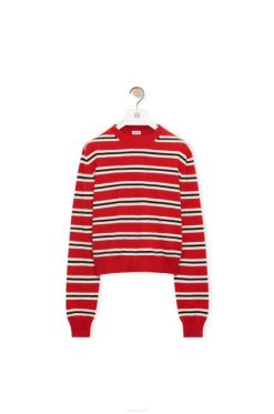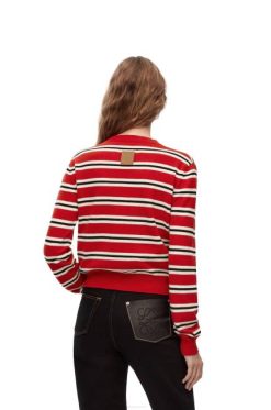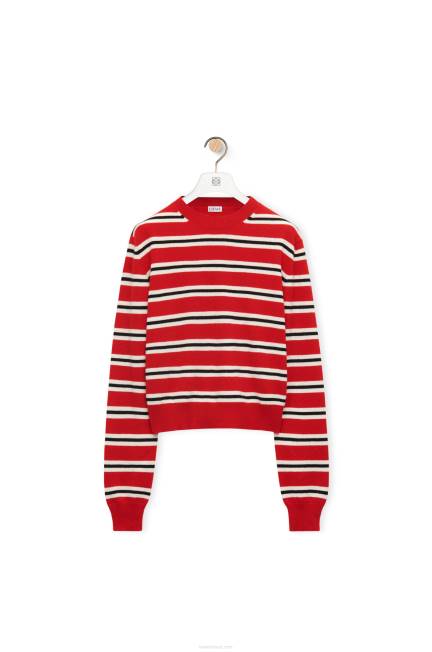 suéter listrado de gola redonda com gola, punhos e bainha canelados.