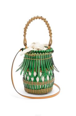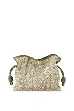 verde/abacate verde 80ZJ607 mulheres clutch flamenca em jacquard anagrama e couro de bezerro Loewe