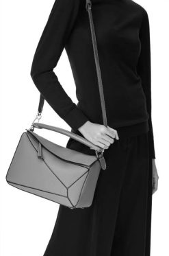 caramelo claro 80ZJ299 mulheres bolsa mini quebra-cabeça em couro de bezerro granulado macio Loewe
