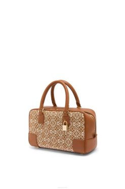 castanho/pecã 80ZJ504 mulheres bolsa cubi pequena em jacquard anagrama e couro de bezerro Loewe