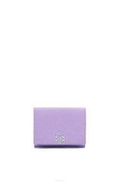 lilás claro 80ZJ1235 mulheres Carteira com três dobras anagrama em couro de bezerro granulado Loewe
