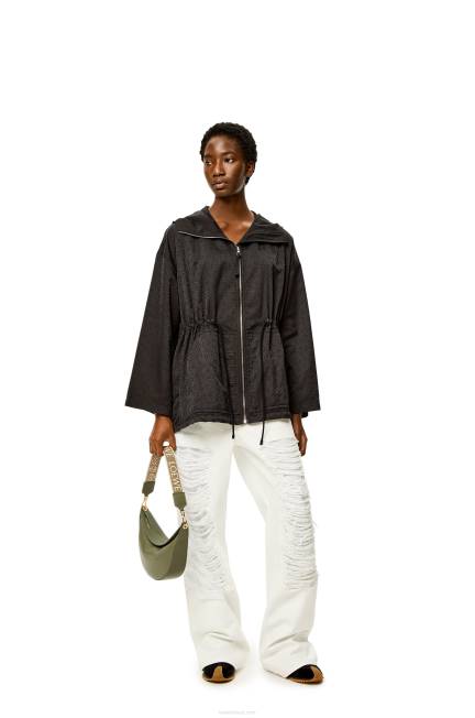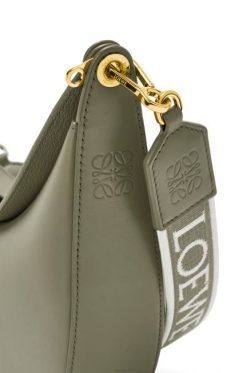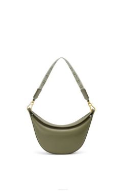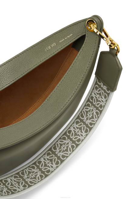 a loewe luna é uma bolsa hobo meia-lua meticulosamente trabalhada com uma silhueta escultural e um fecho de lábio duplo curvo. um ilhó deslizante oculto permite que a bolsa seja personalizada com um pingente ou uma alça adicional. esta versão pequena é confeccionada em couro de bezerro acetinado com alça em jacquard loewe.