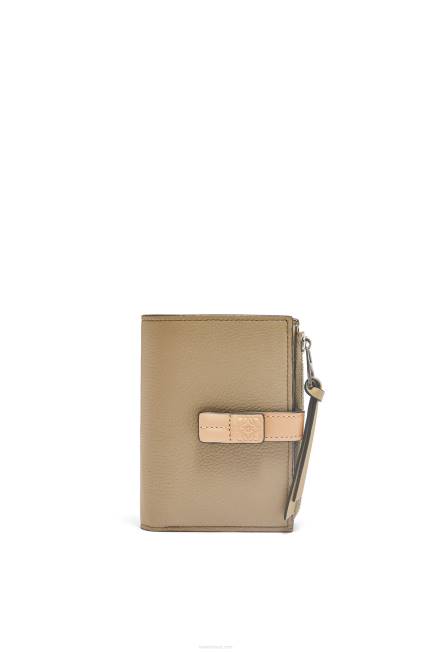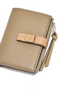 alcachofra verde/bege empoeirado 80ZJ1289 mulheres carteira fina dobrável com zíper em couro de bezerro granulado macio Loewe