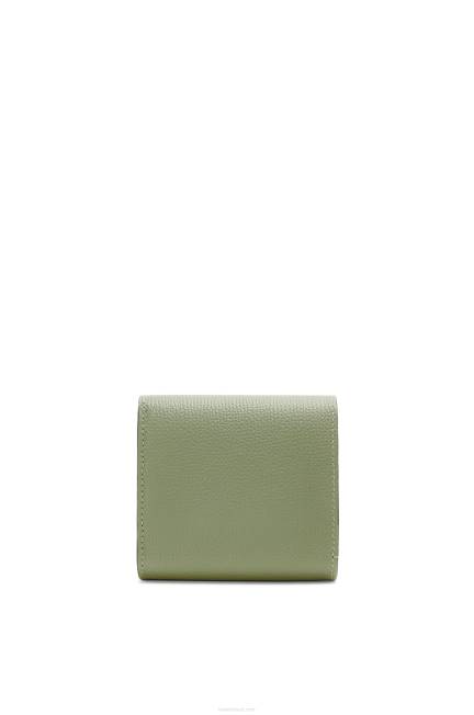 areia 80ZJ1214 mulheres Carteira com três dobras anagrama em couro de bezerro granulado Loewe