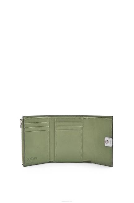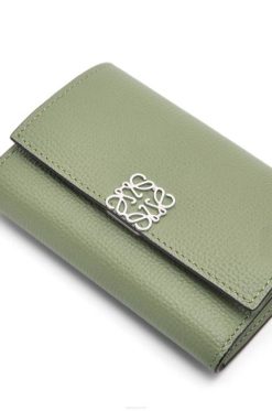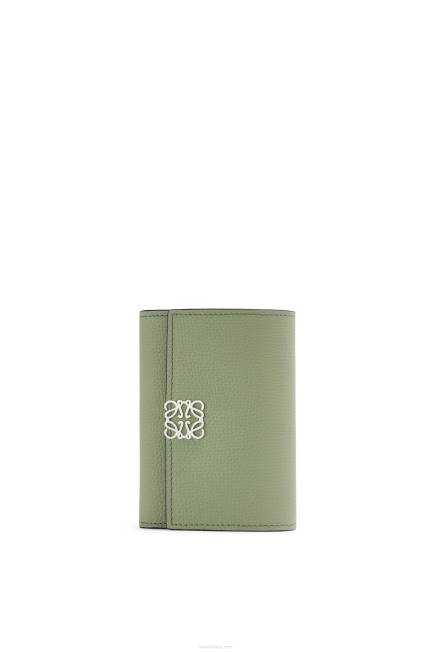 cinza pérola 80ZJ1206 mulheres Carteira com três dobras anagrama em couro de bezerro granulado Loewe