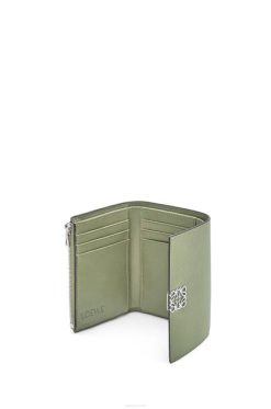 areia 80ZJ1215 mulheres carteira compacta com aba anagrama em couro de bezerro granulado Loewe