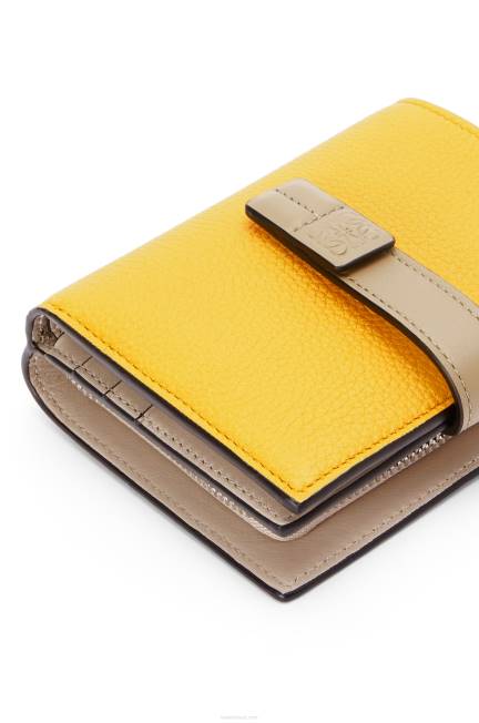 amarelo/argila verde 80ZJ1308 mulheres carteira compacta com zíper em couro de bezerro granulado macio Loewe