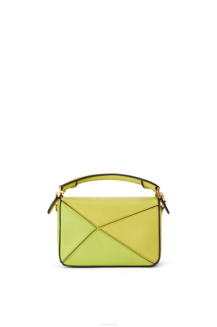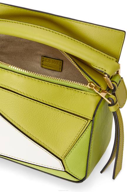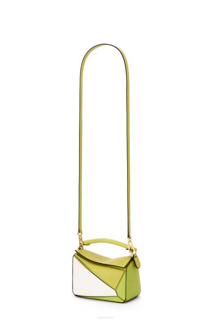 a bolsa quebra-cabeça é a bolsa de estreia da loewe do diretor criativo jonathan anderson. uma forma cubóide e uma técnica de corte precisa criam as linhas geométricas distintas do quebra-cabeça. esta versão mini é confeccionada em couro de bezerro contrastante