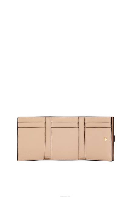 areia 80ZJ1214 mulheres Carteira com três dobras anagrama em couro de bezerro granulado Loewe