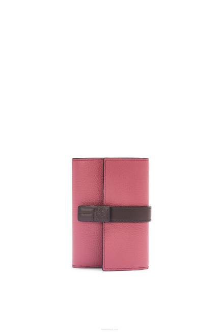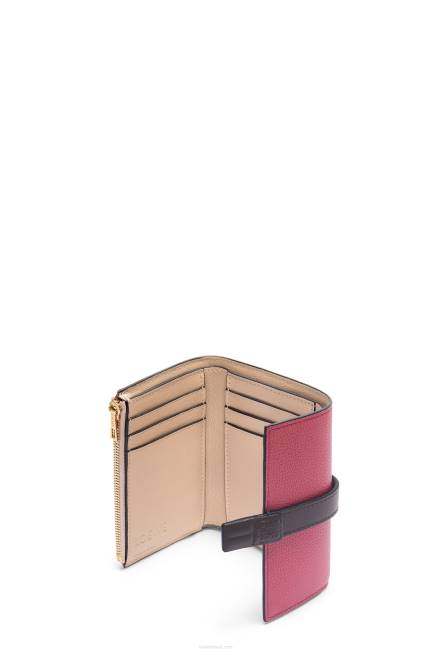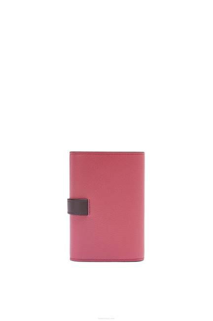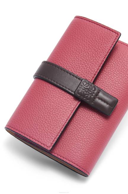 ameixa/chocolate 80ZJ1243 mulheres carteira vertical pequena em couro de bezerro granulado macio Loewe