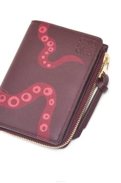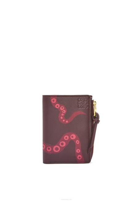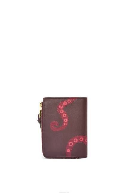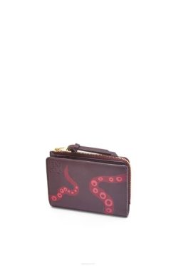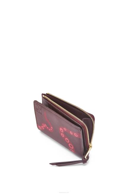 carteira slim com zíper em couro de bezerro clássico com um polvo trabalhado em técnica de marchetaria de couro e inspirada no trabalho do britânico studio potter bernard leach.