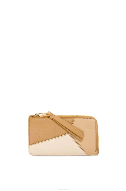 angorá/bege empoeirado 80ZJ1326 mulheres porta-cartões de moedas de quebra-cabeça em couro de bezerro clássico Loewe