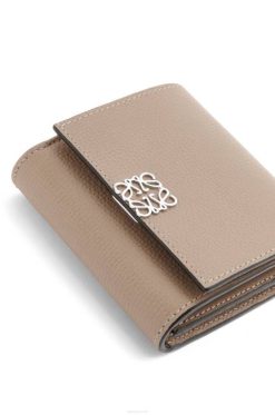 cinza pérola 80ZJ1206 mulheres Carteira com três dobras anagrama em couro de bezerro granulado Loewe