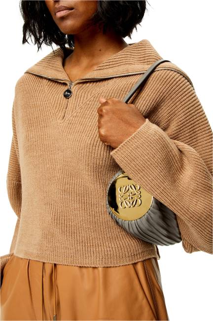 uma bolsa tubular versátil em pele de cordeiro napa plissada que se transforma em pulseira. acabamento com placas de metal em cada extremidade.