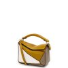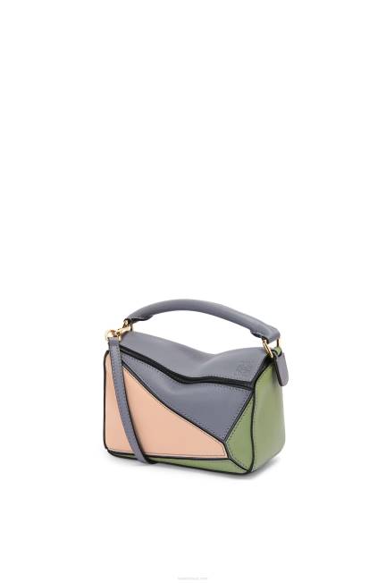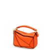 a bolsa quebra-cabeça é a bolsa de estreia da loewe do diretor criativo jonathan anderson. uma forma cubóide e uma técnica de corte precisa criam as linhas geométricas distintas do quebra-cabeça. esta versão mini é confeccionada em couro de bezerro contrastante