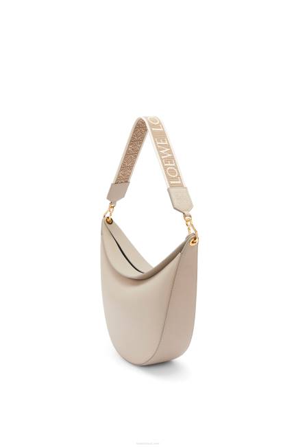 a loewe luna é uma bolsa hobo meia-lua meticulosamente trabalhada com uma silhueta escultural e um fecho de lábio duplo curvo. um ilhó deslizante oculto permite que a bolsa seja personalizada com um pingente ou uma alça adicional. esta versão é confeccionada em couro de bezerro acetinado com alça em jacquard loewe.