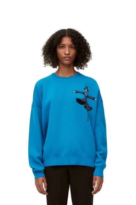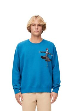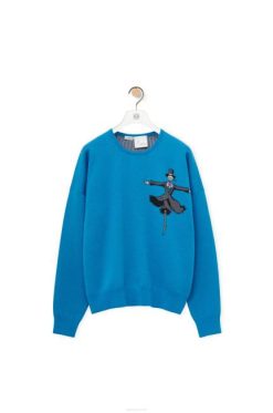 Camisola de gola redonda em lã leve com jacquard intarsia cabeça de nabo no peito e loewe nas costas. com gola, punhos e barra canelados. este suéter faz parte da coleção cápsula do castelo em movimento da loewe x howl.