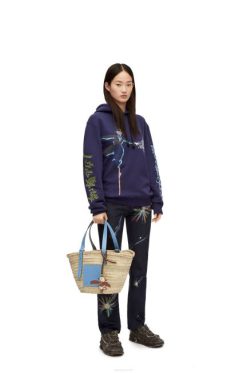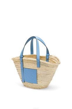 azul claro 80ZJ58 mulheres sacolinha em folha de palmeira e couro de bezerro Loewe
