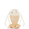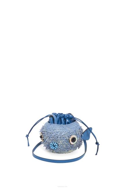 bolsa baiacu confeccionada em palmeira de iraca com olhos e barbatanas em couro de bezerro e top com cordão em couro de bezerro.