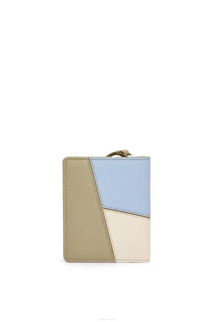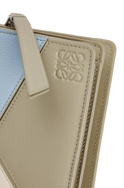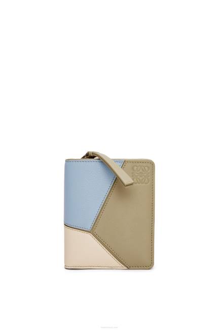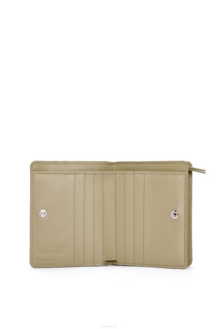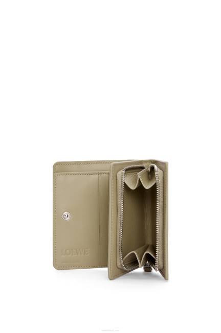 azul empoeirado/verde sábio 80ZJ1213 mulheres carteira compacta com zíper em couro de bezerro clássico Loewe