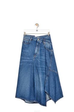saia midi jeans assimétrica com bolsos laterais e um bolso traseiro aplicado.
