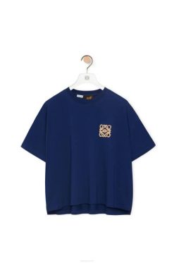 T-shirt boxy decote careca em algodão com anagrama bordado texturizado.