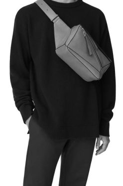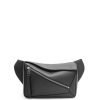 a bolsa quebra-cabeça é a bolsa de estreia da loewe do diretor criativo jonathan anderson. uma forma cubóide e uma técnica de corte precisa criam as linhas geométricas distintas do quebra-cabeça. esta versão pequena bumbag é confeccionada em couro de bezerro clássico.
