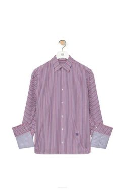 camisa dobrada confeccionada em popeline leve de algodão listrado.