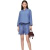 Camisa cropped com botões frontais e trapézio em mescla de popelina lisa e anagrama de algodão. costas divididas com laços que podem ser presos na frente ou nas costas.