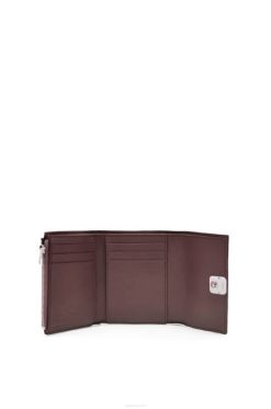 Borgonha 80ZJ1296 mulheres Carteira com três dobras anagrama em couro de bezerro granulado Loewe