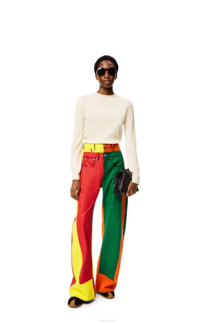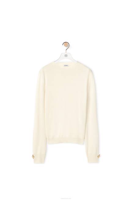suéter de gola redonda em caxemira com mangas dobradas com logótipo l em tom dourado. com punhos e bainha canelados.