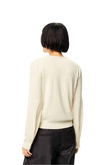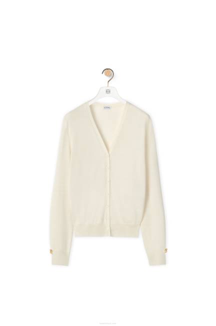 Cardigan com decote em V em caxemira com mangas dobradas com logotipo l dourado. com punhos e bainha canelados.