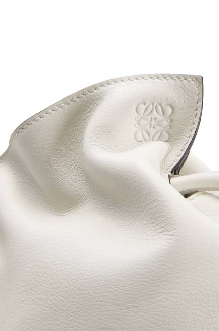 lançada na década de 1970, a clutch flamenca fecha com puxadores de cordão com acabamento em nós enrolados característicos. esta versão é confeccionada em couro de bezerro nappa.