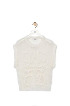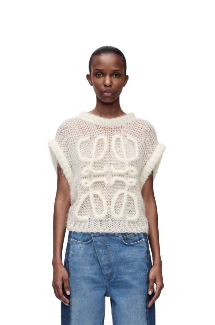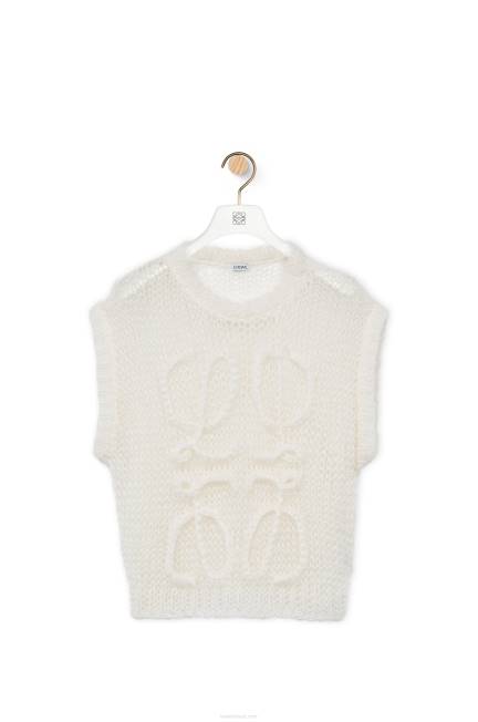colete anagrama confeccionado em tricô de mohair leve a médio.